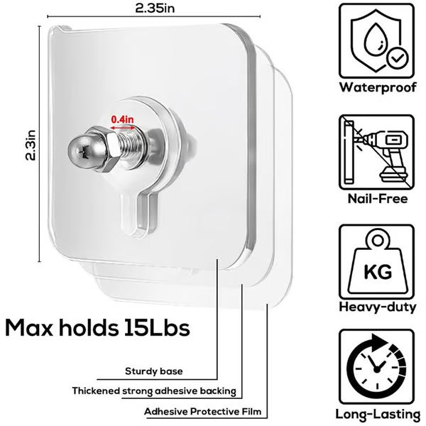 - SELF-ADHESIVE HOOKS FOR HEAVY LOADS - self-adhesive, perfect for hanging shower and bath accessories, suitable for umbrellas, scarves, towels, bathrobes, bags, jackets, keys, handbags, baseball caps, dog leashes, etc.